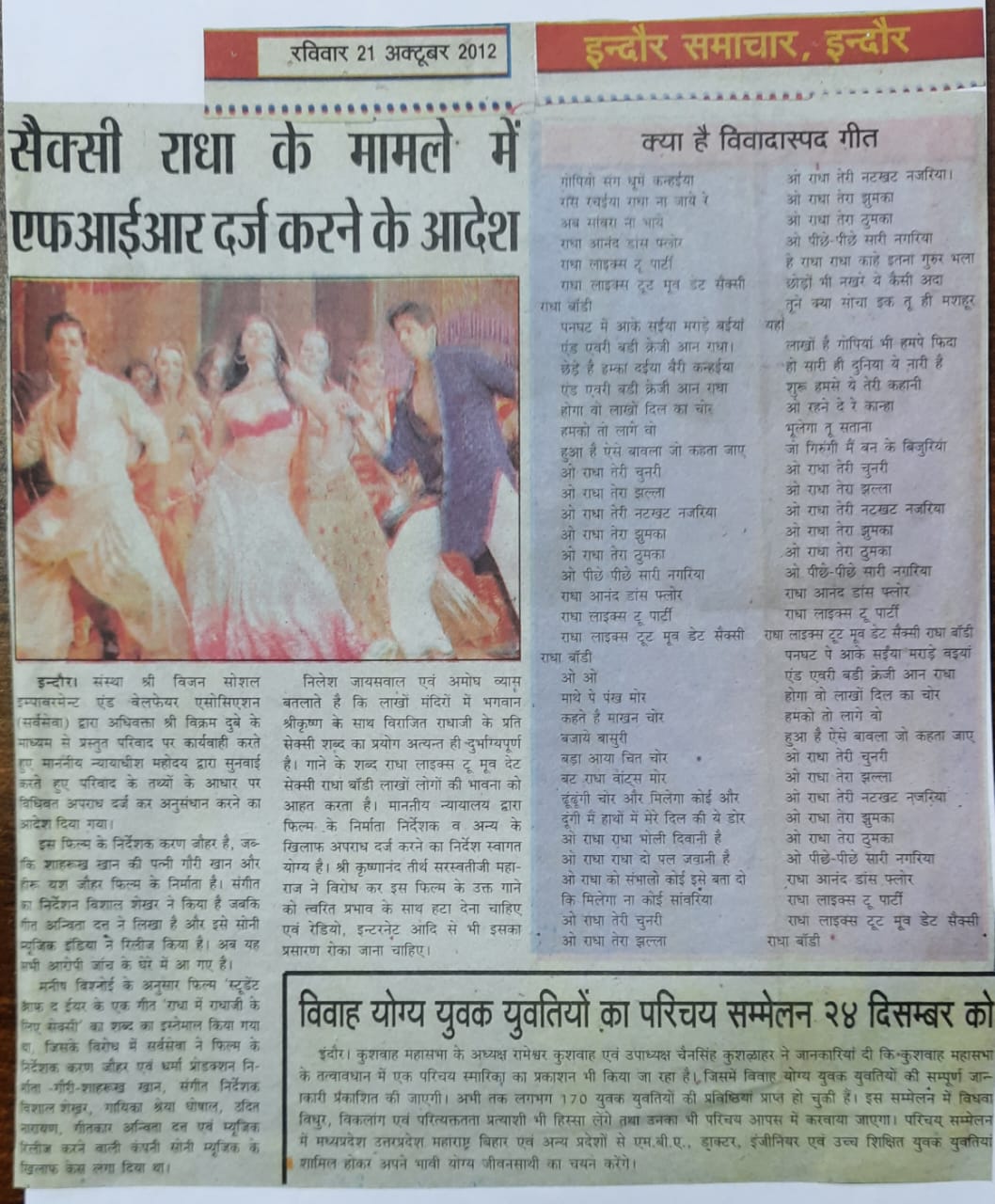 Society SRV SEWA file case against Movie Maker who used wrong word for Radha Ji